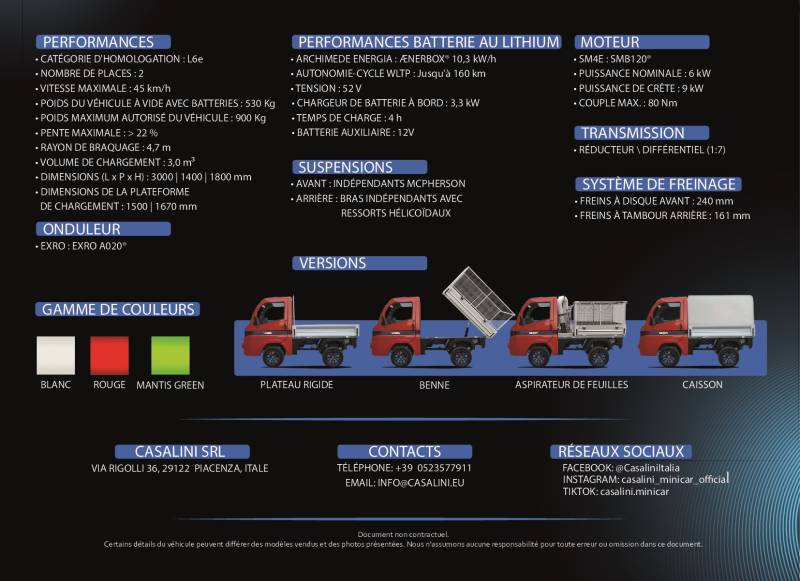 Vous en réviez, Casalini l'a fait !!! Pour tous les professionnels, pour les petits travaux du quotidien, ce camion sans permis électrique vous permet de transporter tout ce dont vous avez besoin en toute commodité.