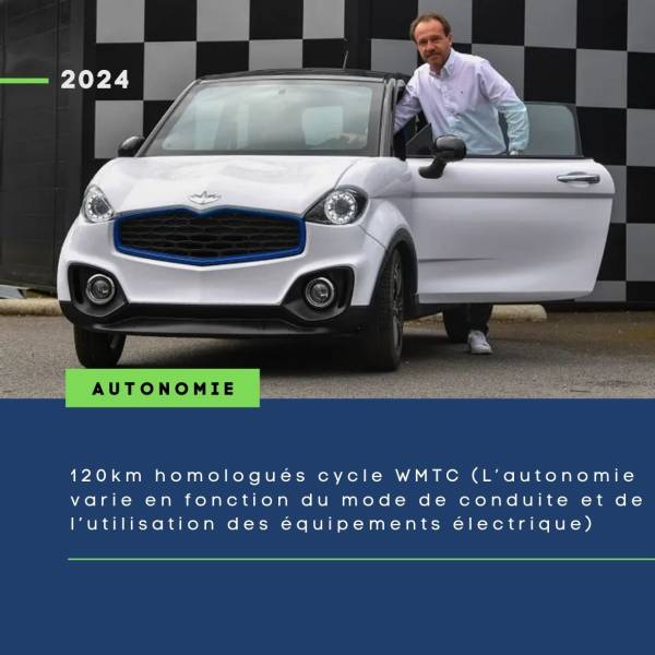 120km homologués cycle WMTC (L’autonomie varie en fonction du mode de conduite et de l’utilisation des équipements électrique)