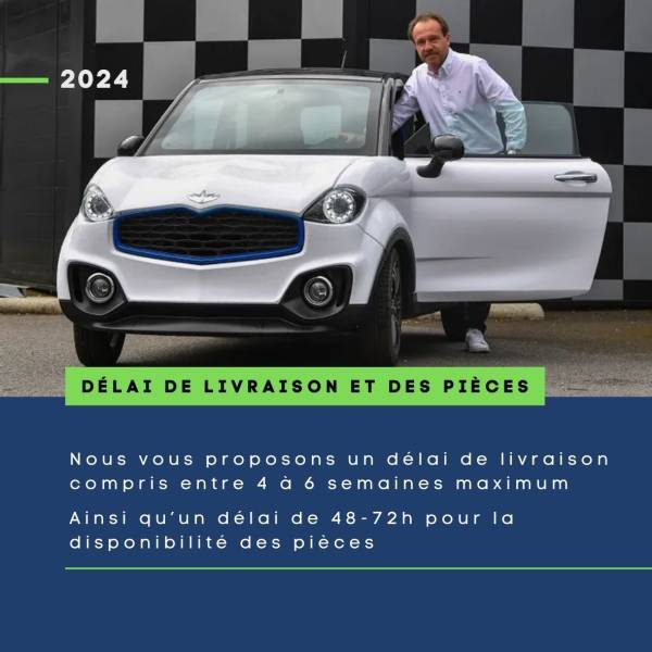 Nous vous proposons un délai de livraison compris entre 4 à 6 semaines maximum Ainsi qu’un délai de 48-72h pour la disponibilité des pièces
