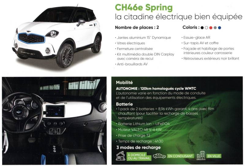 Chez Evolution auto à la Seyne-Sur-Mer, nous avons le plaisir de vous proposer une nouvelle voiture sans permis électrique 100% Française et accessible à partir de 14ans : La Chatenet CH46e SERIE (électrique) Avec ses deux couleurs aux choix (Gris nardo ou Noir), vous pourrez personnaliser votre voiture sans permis selon votre préférence esthétique.